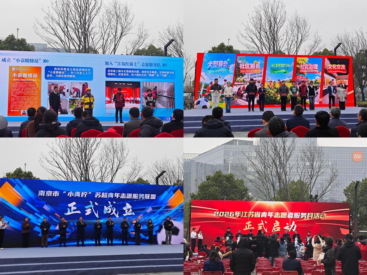 本次活动内容丰富、亮点纷呈。开幕式上,“十五五”江苏省青年志愿服务重点领域项目正式发布,涵盖大型赛会、社区服务、乡村振兴、社会治理、文化交流等领域。现场成立南京市“小青柠”苏超青年志愿服务联盟、“小青柠”大型赛会青年志愿服务联盟,志愿赛道全新升级。青年志愿者代表们分享的暖心故事,传递着向上向善的青春力量;江苏共青团“伙伴计划·与冠军同行”进青年社区服务活动互动热烈,冠军携手同行,活力满满。