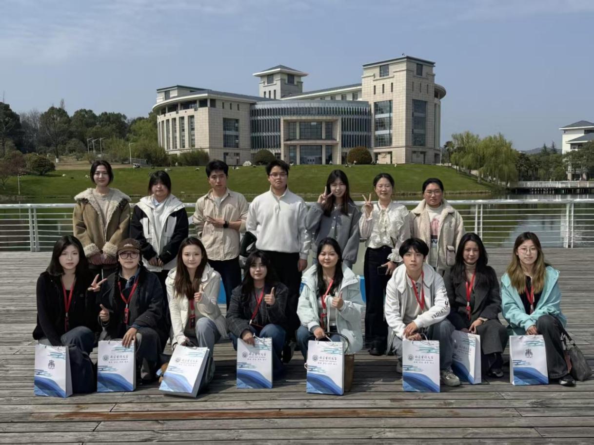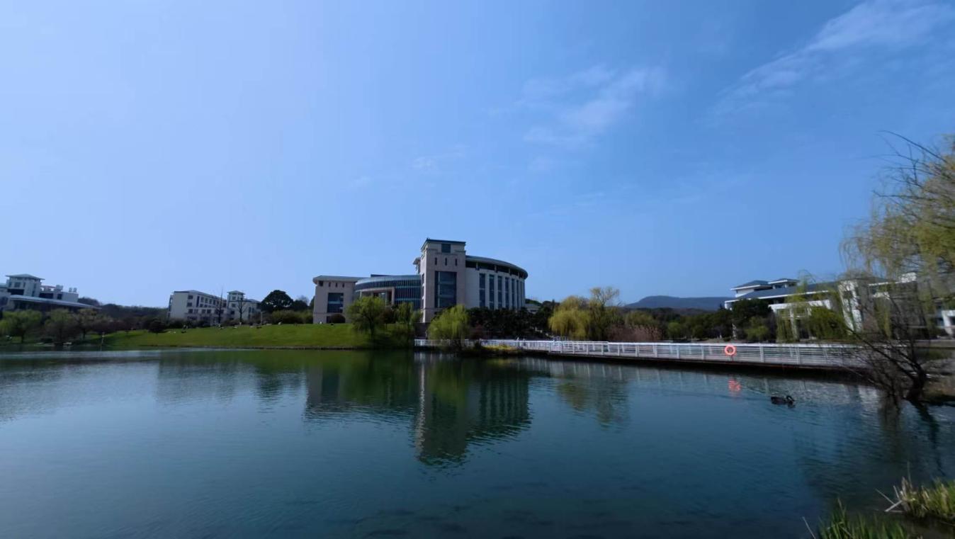 在南审同学的热情引导下,我校走访人员一同漫步校园,沉浸式感受春日校园的生机与活力。道路两旁树木抽芽、繁花盛放,粉白花朵在蓝天映衬下清新雅致;草坪绿意葱茏,点缀着紫色小花,处处生机盎然;清澈湖水波光粼粼,岸边垂柳依依,与错落有致的现代建筑相映成趣,勾勒出雅致又充满活力的校园图景。